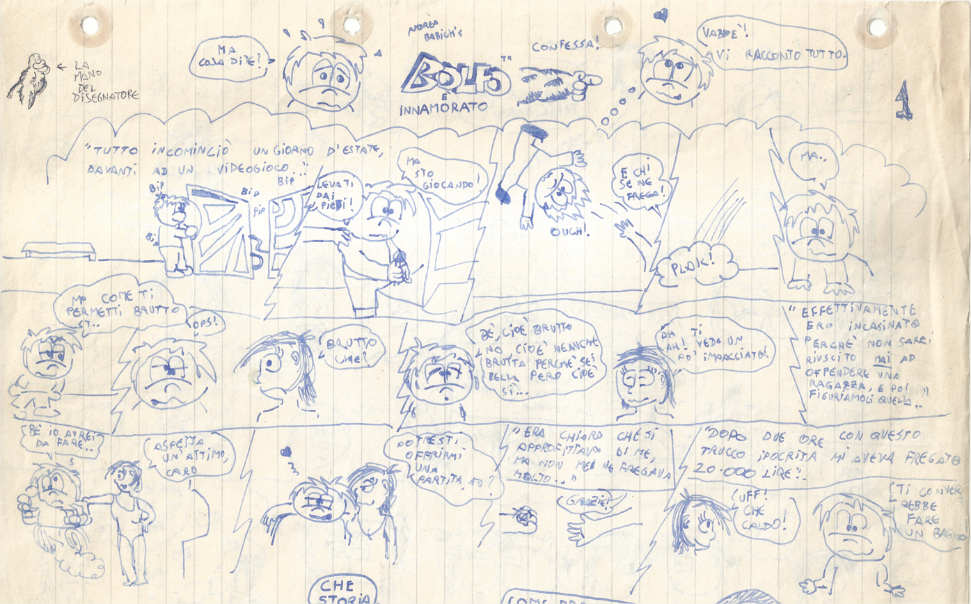 (Bolfo: il nome che avevo scelto per il mio alter ego fumettistico. Come il collare antipulci della Bayer. Tanto - pensai - quanto mai potrà durare un marchio di collari antipulci. Potrò diventare grande, avere successo con il mio fumetto "Bolfo" e nessuno si ricorderà dei collari. Che ovviamente sono ancora un brand di enorme successo della Bayer, perché big pharma vs fumetti amateur sempre 1:0.)